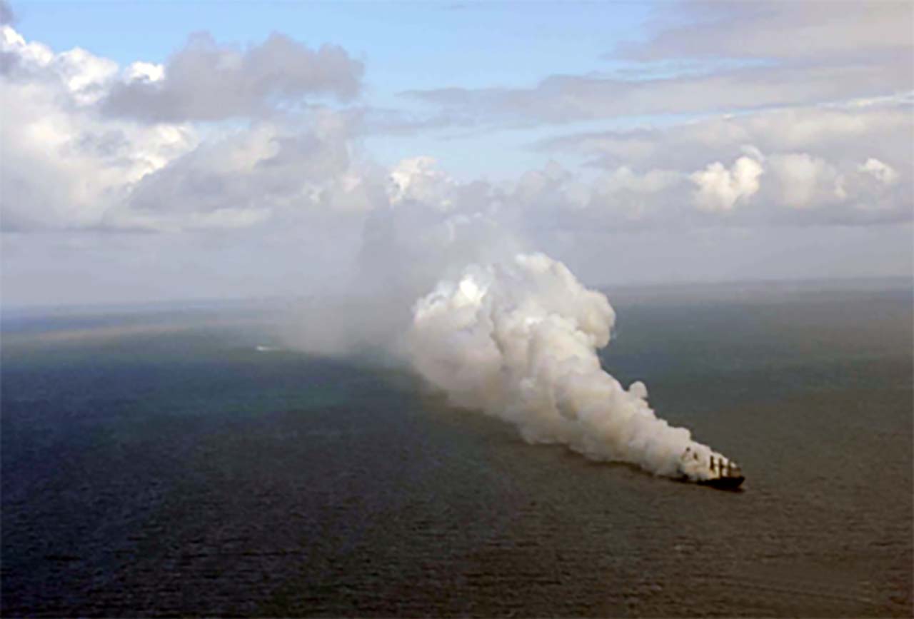 Figure 2 Smoke emitting from the ship the day following the incident.